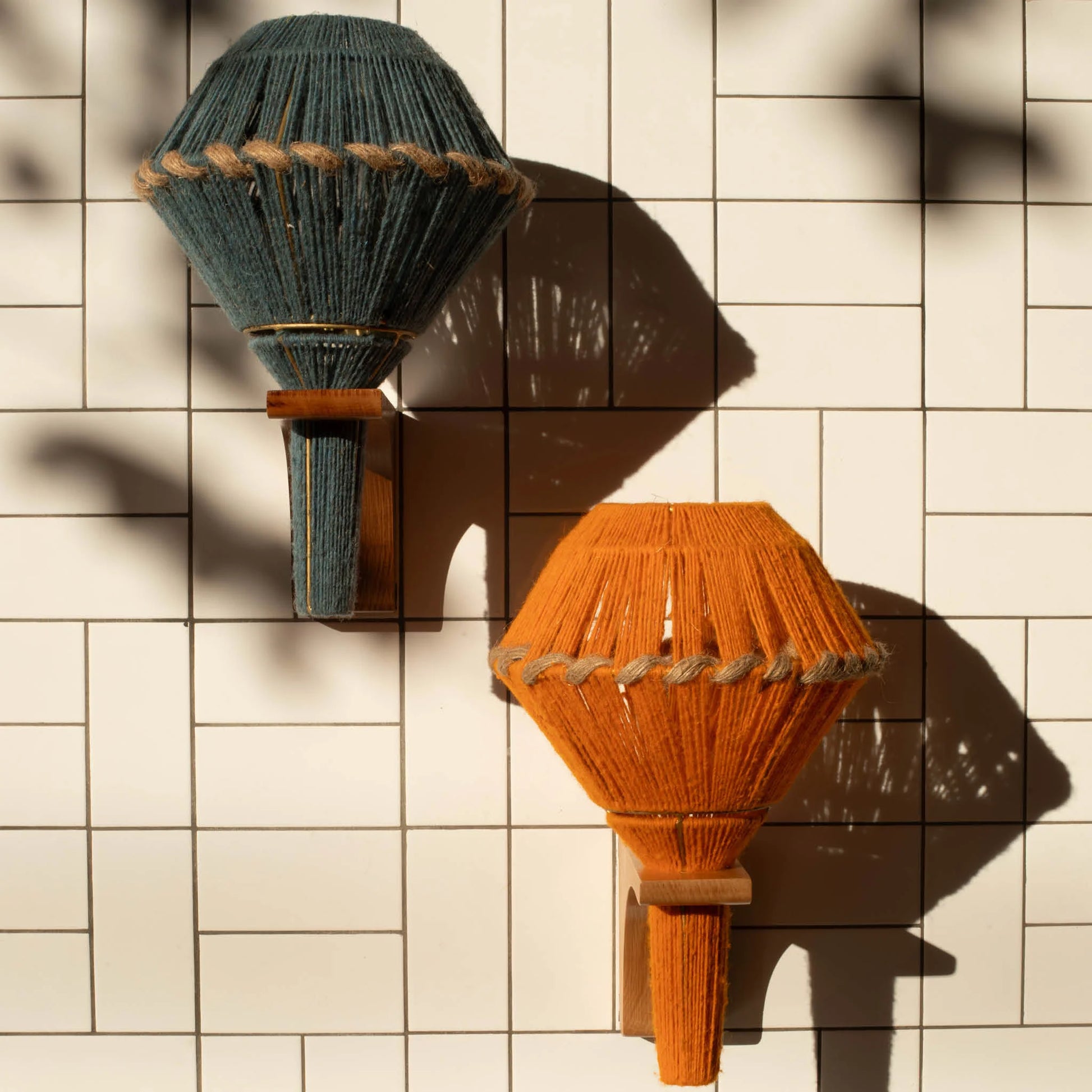 - Couleurs abat jour en laine : écru, orange, bleu céladon