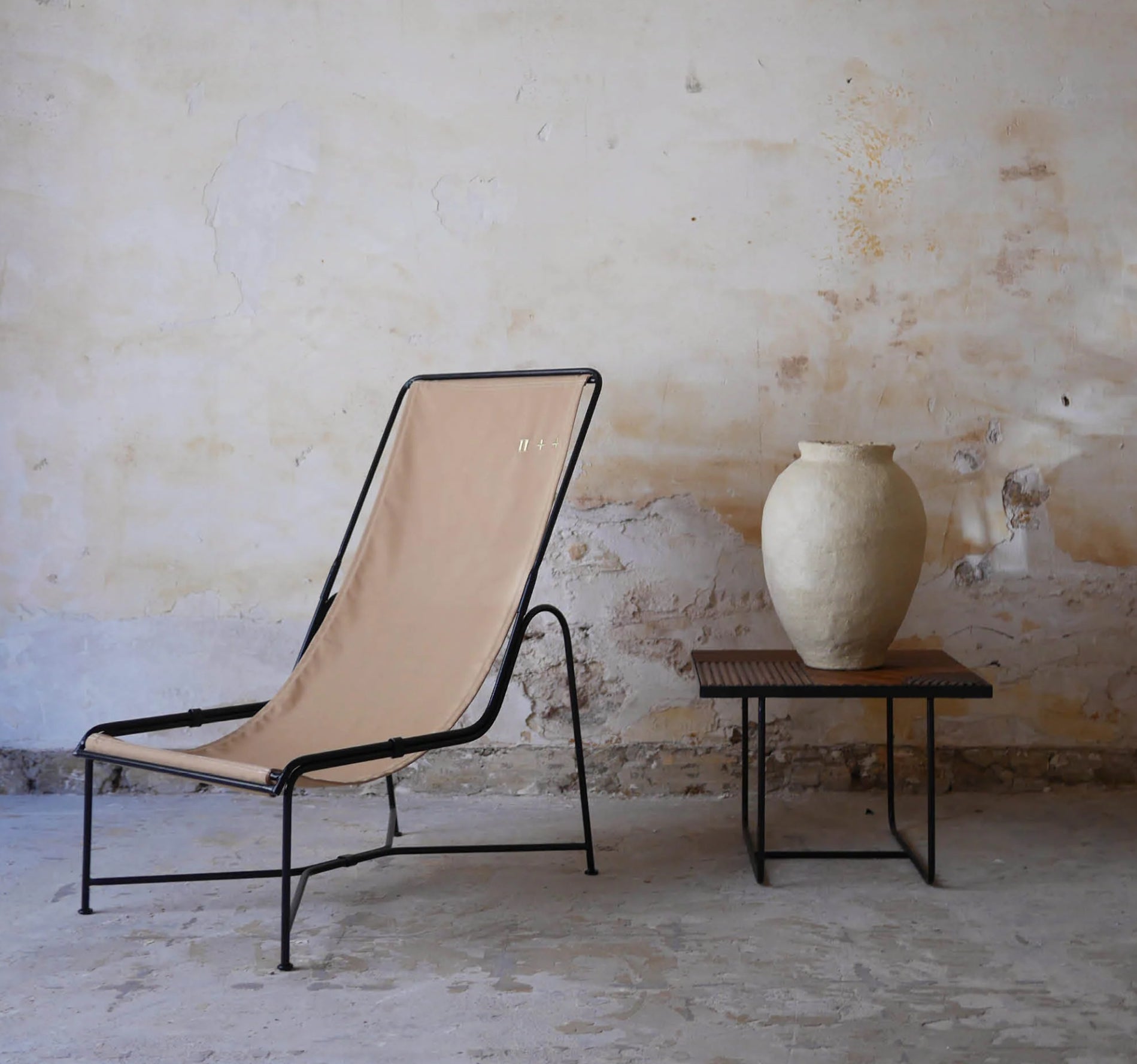Cette chaise longue a autant de succès en mobilier intérieur qu'extérieur. Sa toile déperlante et sa structure en fer recouverte d'une peinture epoxy lui font résister à toutes les intempéries et son style intemporel en fait une pièce minimaliste et élégante de votre intérieur.