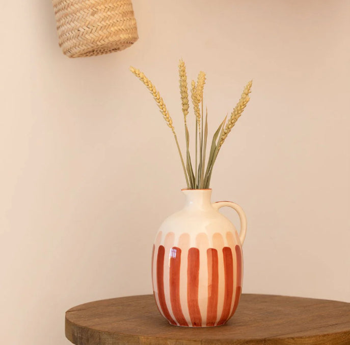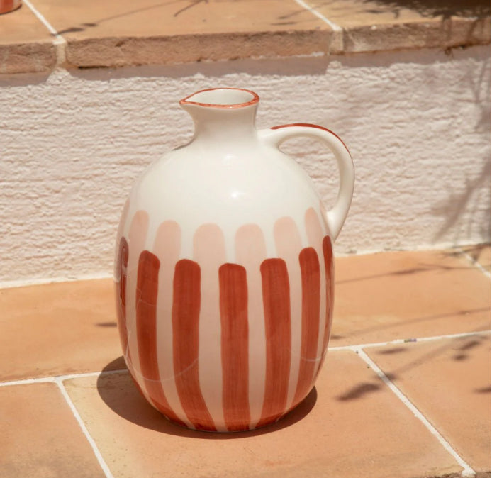 Le pichet en céramique est notre indispensable du quotidien : idéal pour servir de l'eau, préparer vos citronnades et thés glacés. Ce nouveau format, plus rond, amène de la douceur tout en gardant une touche d'originalité avec ses rayures rosées et terracotta.