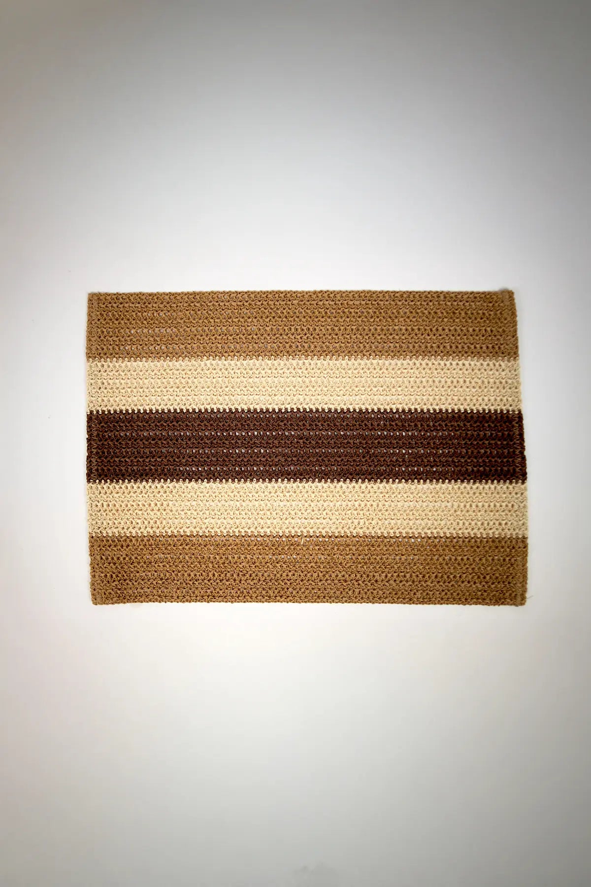 Ce set de table en raphia tressé, aux teintes naturelles de beige, brun et miel, célèbre la beauté brute des fibres végétales et le savoir-faire artisanal.