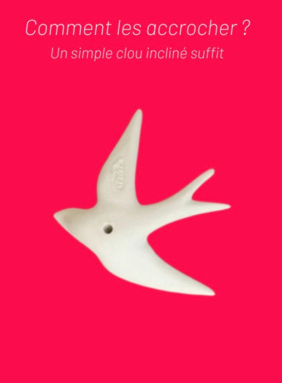Notre hirondelle Volage peut se placer au mur avec un simple clou incliné (voir le tuto), dans un jardin avec un pique, ou se poser sur un meuble.